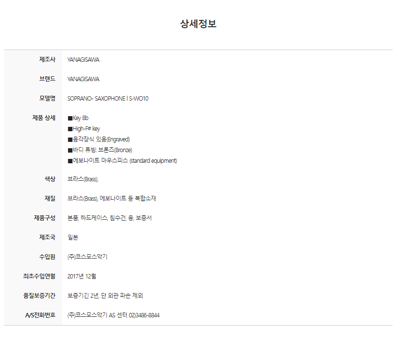 YANAGISAWA S-WO10 ㅣ SOPRANO SAX (일본생산)
